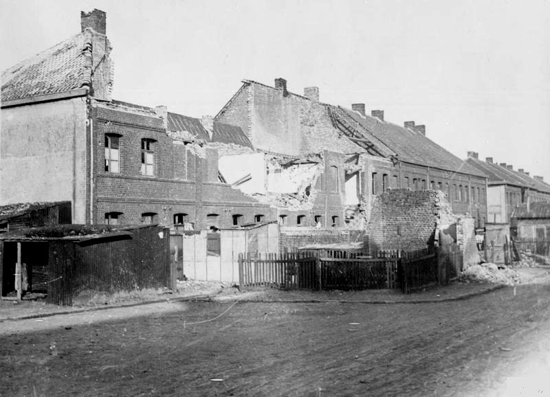 .. les bombardements allemands étaient fréquents sur la Fosse n°3 et Fosse N°1............ .......... ...................... .photo ci dessous: bombardement de la rue de Montreuil ( rue face au lac de Loisinord)