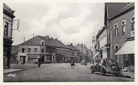 Entre Noeux et Hersin , le boulevard Castelnau et la place du chateau d'eau.....En haut a droite la route nationale qui descend jusquau Terminus.... au mileu droite l'église Ste Barbe, l'école de filles,...etc .......