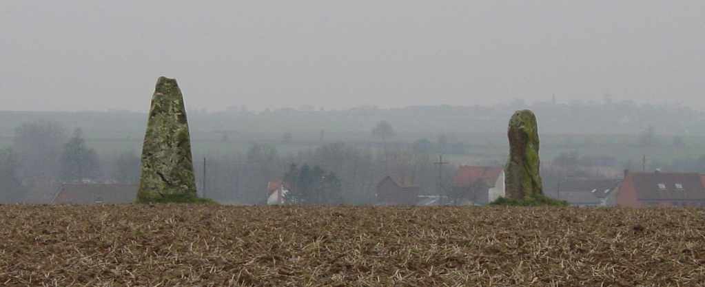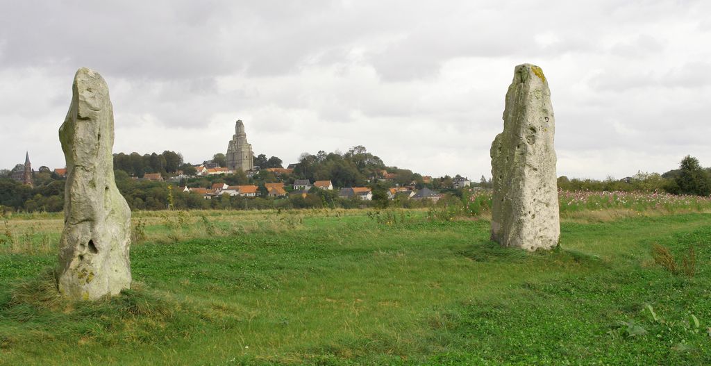En vue du Mont St Eloi, se trouvent au milieu d'un champ, deux menhirs appelés "Pierres Jumelles" , "Pierres Droites" ou aussi "Pierres du Diable". Satan avait conclu un pacte avec la reine Brunehaut (princesse Wisigothe) pour reconstruire en une nuit, la route reliant Arras à Wissant ,(ancienne voie romaine nommée Chaussée Brunehaut, passant par Thérouane) . Si le travail était terminé au premier chant du coq, l'âme de la reine appartiendrait au démon. Celui ci se met immédiatement au travail, dans un vacarme "infernal". Avant la fin de la nuit , la reine réveille son coq qui se met aussitôt à chanter. Le diable n'avait pas encore achevé son travail , et furieux d'avoir été trompé , il jette avec rage dans ce champ , les deux énormes pierres qu'il tenait dans ses mains . La reine Brunehaut connut quelques années plus tard une fin atroce. Une autre légende rapporte que des filles d’Acq, rentrant en retard d’un bal à Villers aux Bois, furent punies et transformées en statues de grès sur le chemin du retour. Les pierres sont aussi appelées "Les Demoiselles d’Acq". Des érudits locaux ont proposé des explications : ainsi, André Levaillant, chroniqueur de l’abbaye du Mont St Eloi(1624), accrédite une tradition "carolingienne" faisant de ces pierres le mémorial des deux batailles ayant opposé Charles le Chauve et le comte de Flandres Baudouin Bras de Fer, en 862, à Acq et à Berthonvalles et les Droites Pierres seraient la sépulture de deux chefs gaulois morts en duel (en 1820 , on trouve en effet deux tombes "gauloises", avec ossements ,débris d'armes et armures, entre les pierres). |